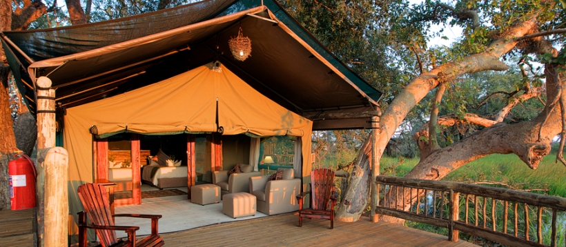 Overlooking the legendary Chief’s Island and bordering the Moremi Game Reserve, Gunn's Camp is one of the last few remaining luxury, vintage safari camps. Set under leafy palms and African Ebony to blend naturally with its unique surroundings, Gunn's Camp achieves a fine balance of comfort without isolating guests from the sights and sounds of the wilderness. There are two camps to choose from at Gunn's - Main Camp and Moremi Crossing. The camps are priced the same and are located within minutes of each other by boat.