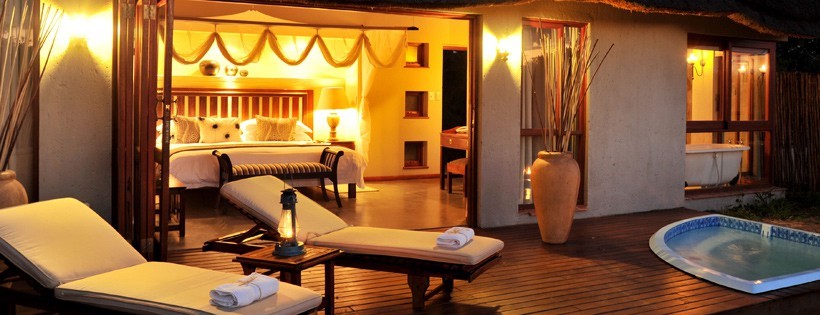 Accommodating 24 guests in luxury individual suites and each with their own private jacuzzi, it features large expanses of glass and magnificent wooden decks for better game-viewing. This main lodge has been carefully designed and built, in keeping with eco-sensitive policies, to ensure that there is little impact on the natural environment, as guests will bear witness to artifacts discovered during the building programme. There is also a very obvious presence of heritage! The construction of the main lodge had to be delayed because of the discovery of an archaeological site, which has now become part of the lodge itself. All suites enjoy either king-size beds or twin rooms with only the finest furniture and imported linen, en-suite bathrooms with antique baths, air conditioning and spacious decks offer stunning views over the river bed and onto the plains beyond.